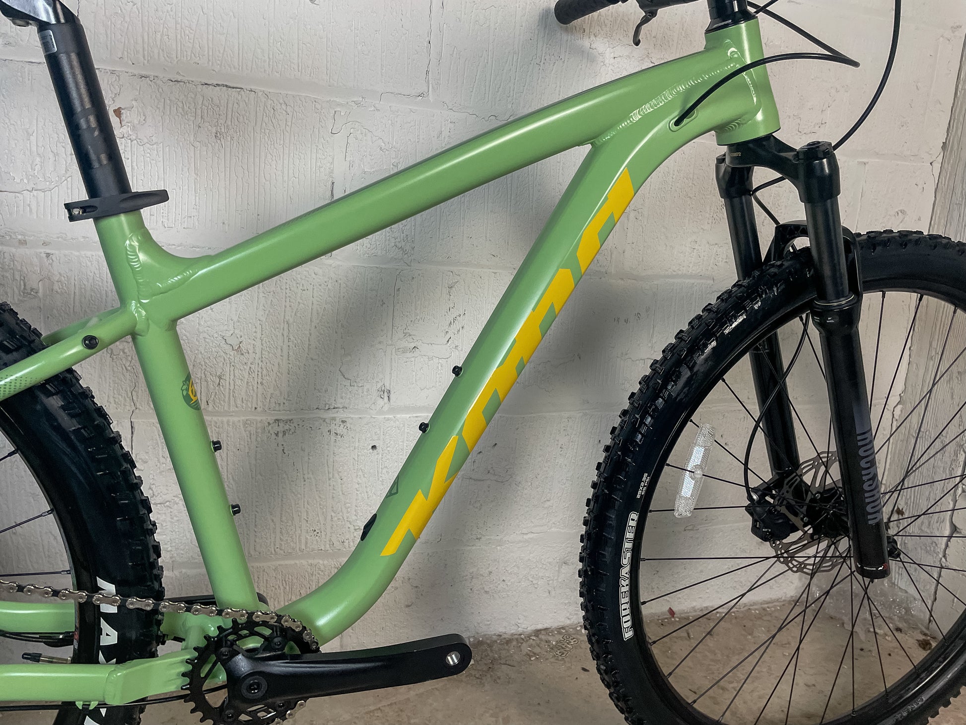 Available In Size Medium. 1 Year warranty involved. RockShox Judy Silver on the front suspension offering a very comfortable ride with the ability to handle anything that’s thrown at it. Full aluminium Frame, Shimano Deore derailleur to make pedaling a breeze with a beautiful “Lime Green” Colour way to finish it off.
