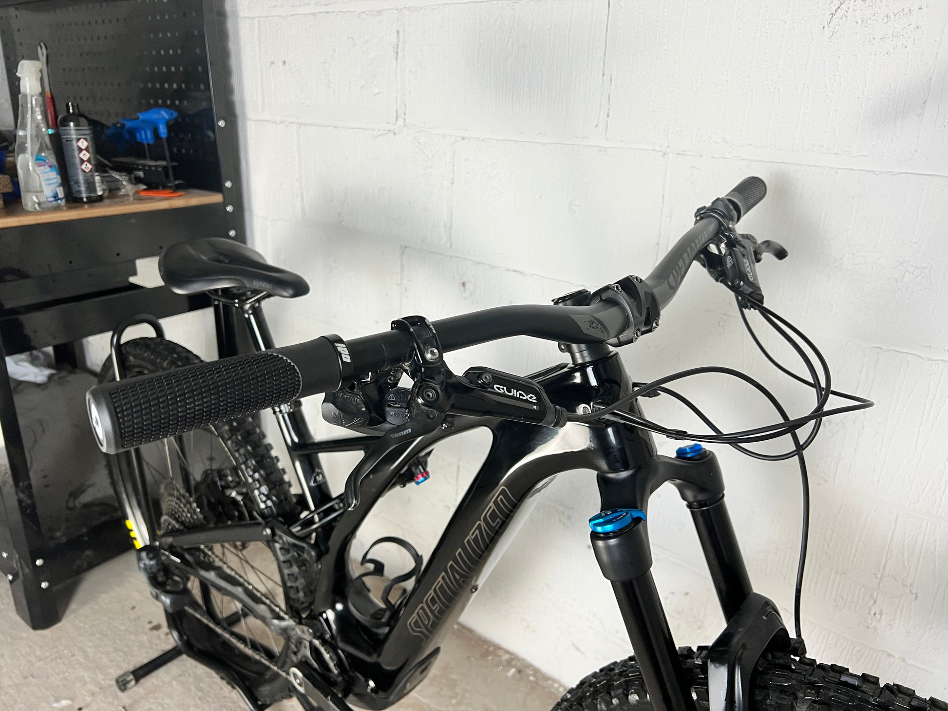 Size Medium. 1 Year warranty involved. Only 50 Miles Rode! Brand new replacement motor under warranty. FOX RHYTHM 34 FLOAT 29 Forks on the front suspension With 160mm of travel and FOX FLOAT DPS Performance on the rear offering a very comfortable ride with the ability to handle anything that’s thrown at it. 320Wh Battery powering you up to 100km per charge. This is the battery you want if you want the longest lasting charge. Specialized SL 1.1 to make pedaling a breeze with a beautiful “Gloss Black” Colour way to finish it off.