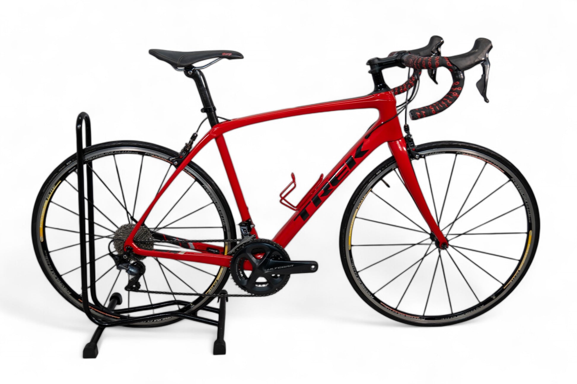 Size 54 . 1 Year warranty involved. Trek Domane SL Has a Premium Carbon Frame. Domane Carbon forks on the front. Shimano Ultegra, 11-28, 11-speed Cassete , direct mount brakes and Bontrager R2 tyres to make pedaling a breeze with a beautiful “Radioactive red” Colour way to finish it off.