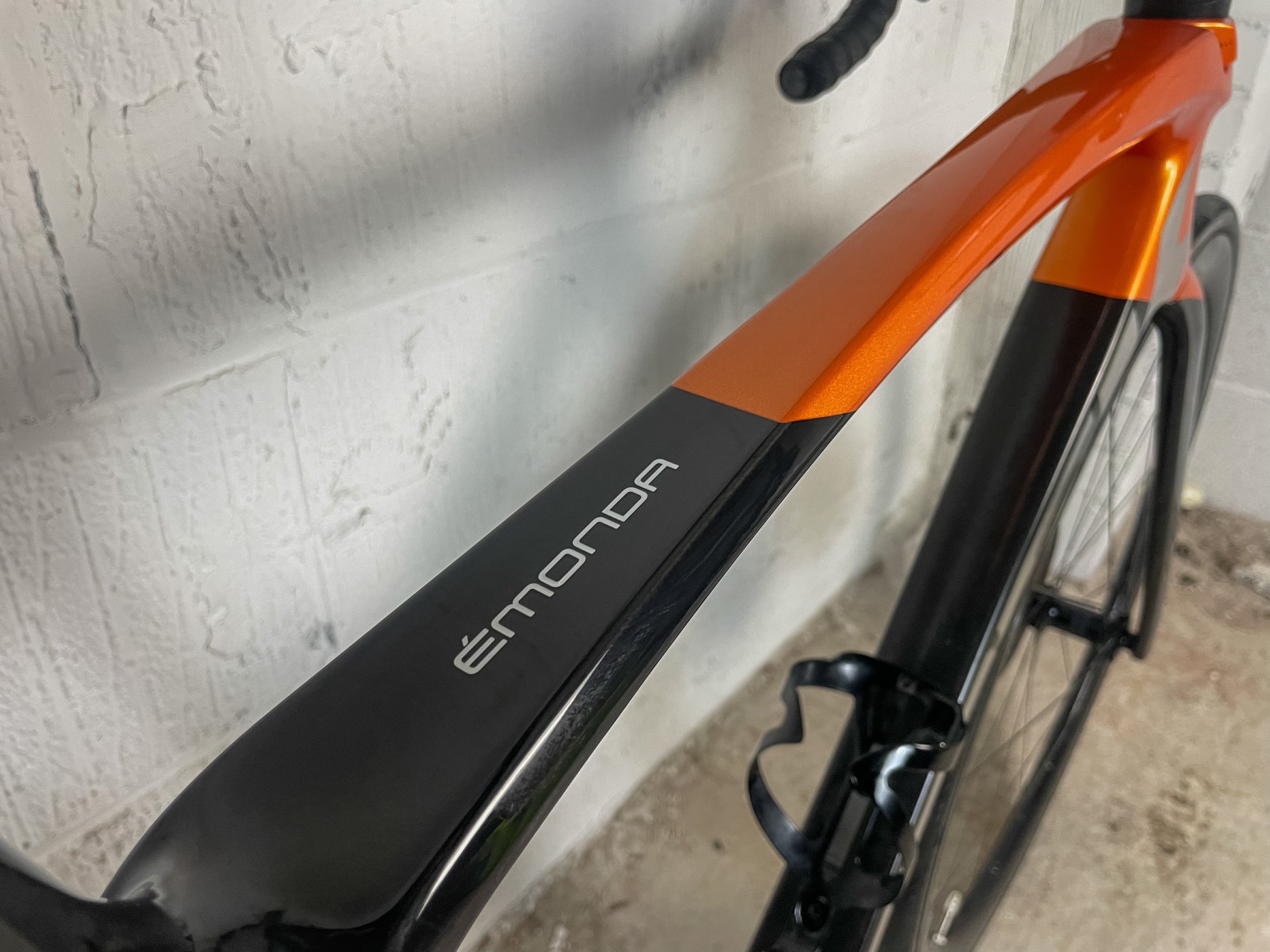 Size 54cm. 1 Year warranty involved. Trek Emonda SL Frameset. Sram Force eTap AXS Groupset. Bontrager Pro Isocore VR-CF handlebars to make pedaling a breeze with a beautiful “Carbon Smoke/ Factory Orange” Colour way to finish it off.