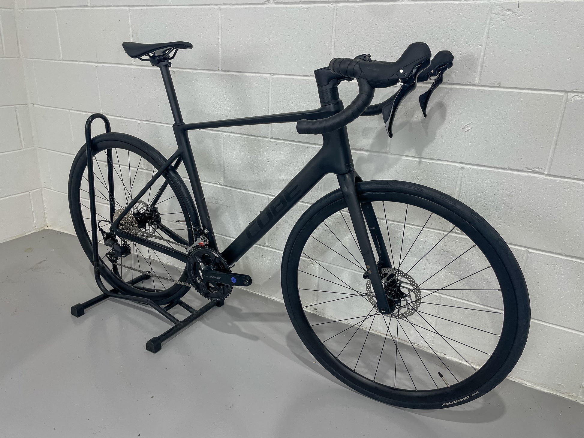 Size 56cm. 1 Year warranty involved. c:62® twin mold technology Frame. cube csl race disc forks. 12-speed shimano 105 rd-r7100-dgs and conti grand prix tyres to make pedaling a breeze with a beautiful “Blackline” Colour way to finish it off.