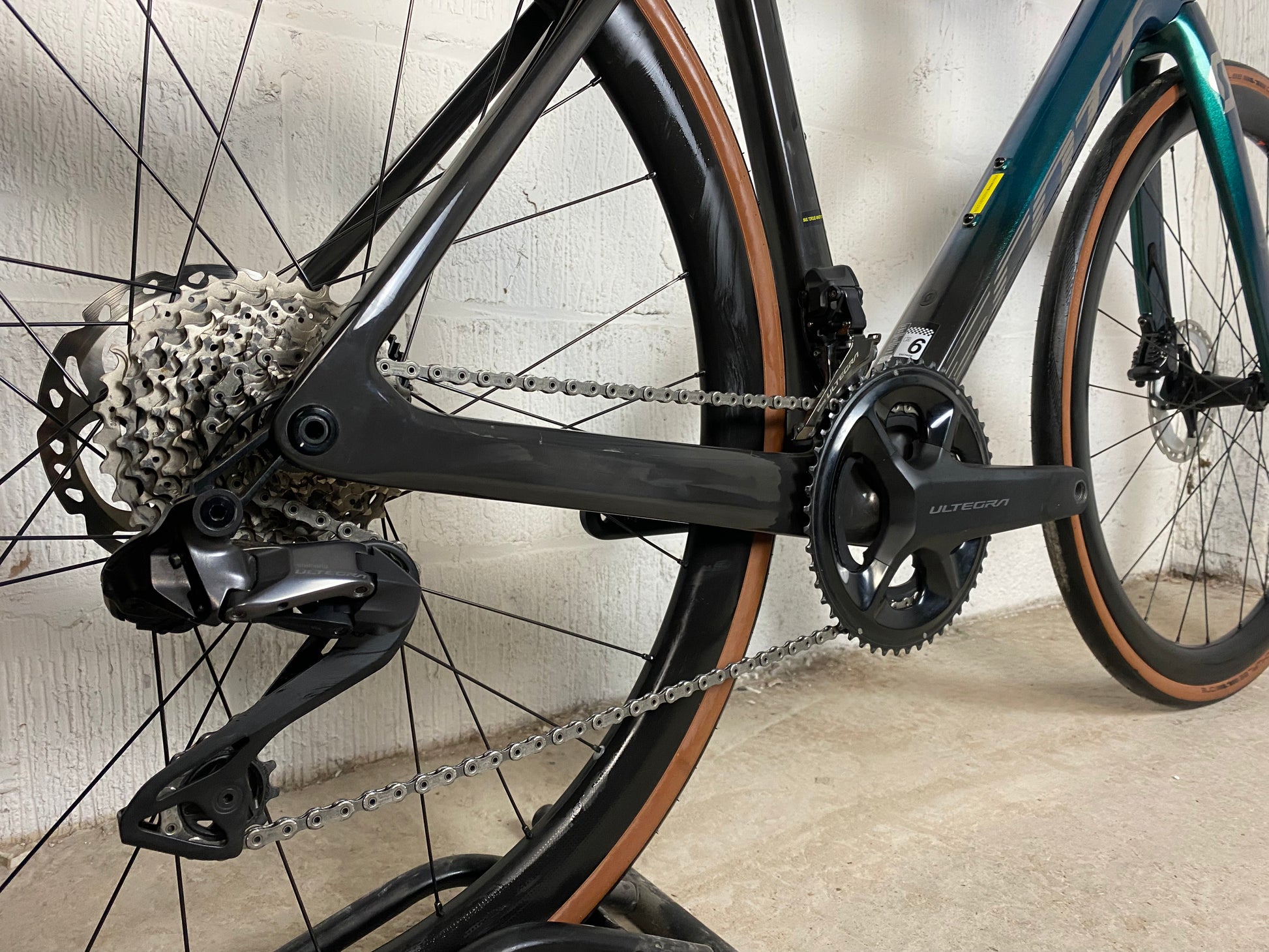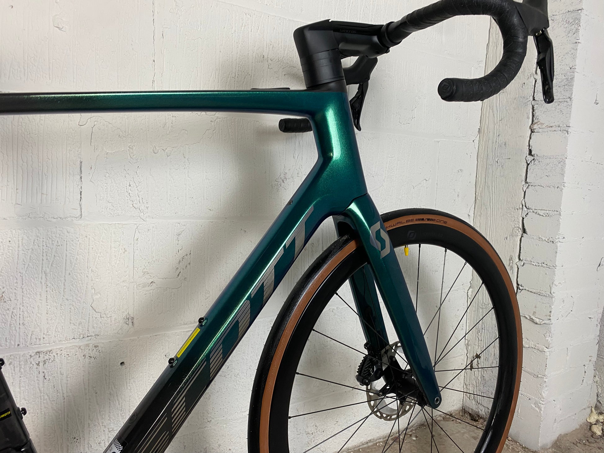 Size XL.1 Year warranty involved. 2022 Year. Premium Carbon Frame. Addict eRIDE HMX Flatmount Disc on the front. Shimano Ultegra Di2 RD-R8150 rear derailleur, Shimano Ultegra crankset, Mahle Motor Hub drive and Schwalbe ONE Race-Guard Fold tyres to make pedaling a breeze with a beautiful “Forrest Green” Colour way to finish it off.
