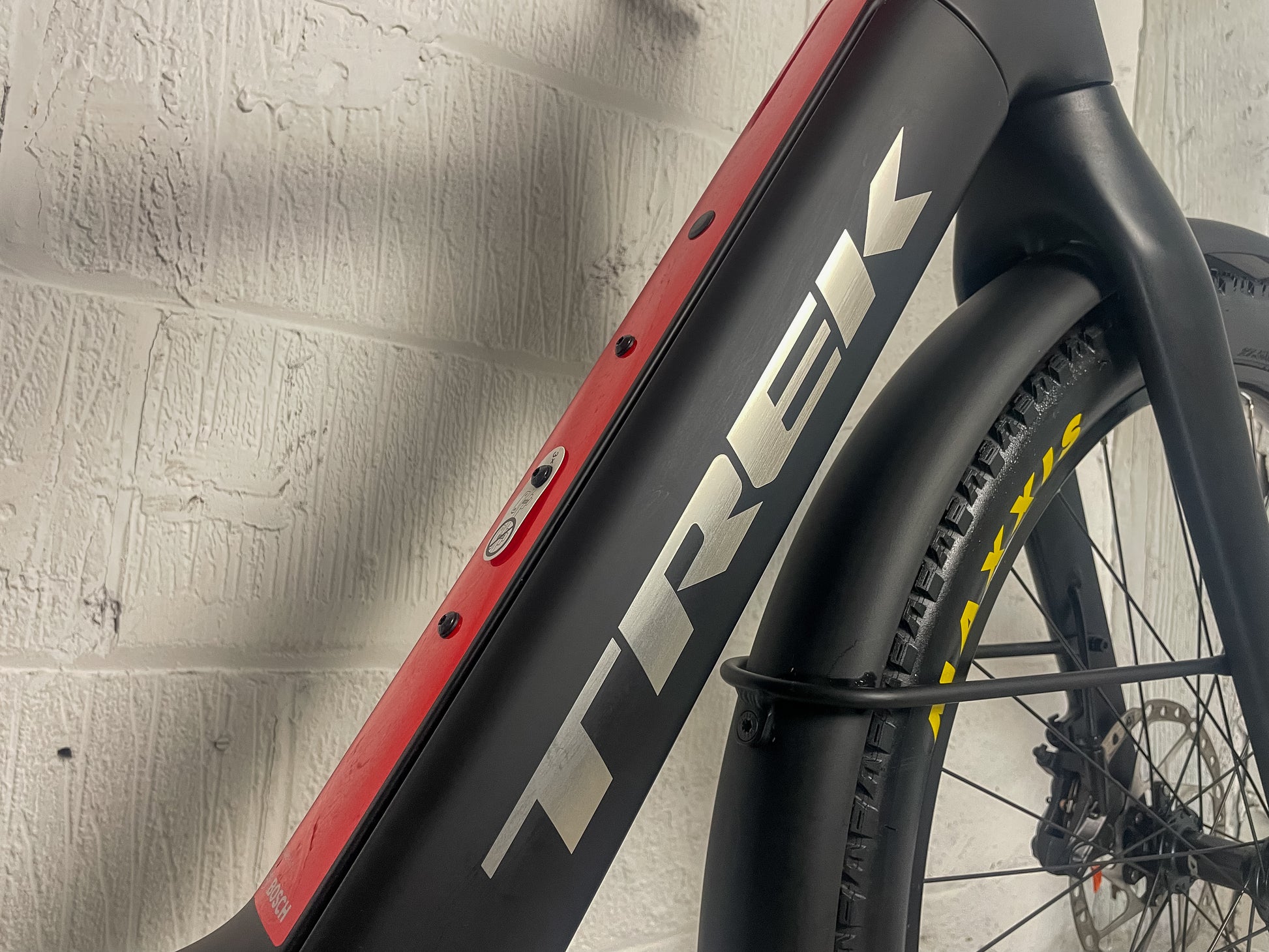 Available In Size Medium. 1 Year warranty involved. Only 400 Miles rode Premium carbon fibre frame alongside Bontrager E6 Hard-Case Lite tyres offering a very comfortable ride with the ability to handle anything that’s thrown at it. 625Wh Battery powering you up to 100km per charge. This is the battery you want if you want the longest lasting charge. Bosch Performance CX Motor to make pedaling a breeze with a beautiful “ Matte Black” Colour way to finish it off.