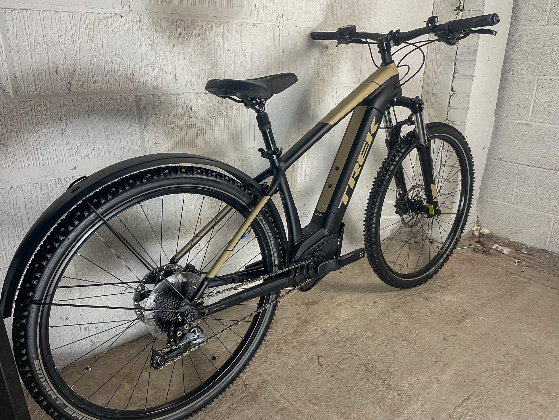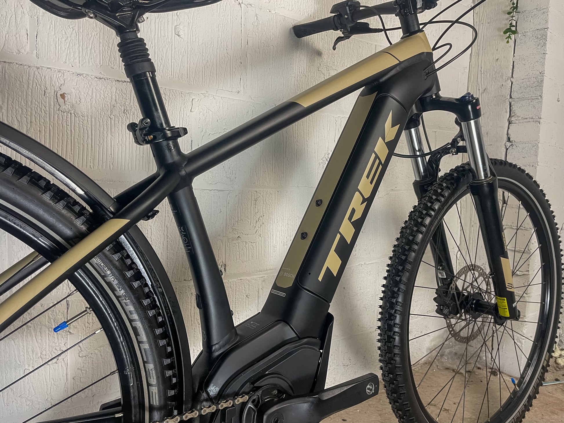 Size Medium. 1 Year warranty involved. Only 900 Miles Rods. SR Suntour XCM 34 on the front suspension With 120mm of travel offering a very comfortable ride with the ability to handle anything that’s thrown at it. 500Wh Battery powering you up to 100km per charge. This is the battery you want if you want long lasting charge. Bosch Performance CX to make pedaling a breeze with a beautiful “Grey & Sand” Colour way to finish it off.