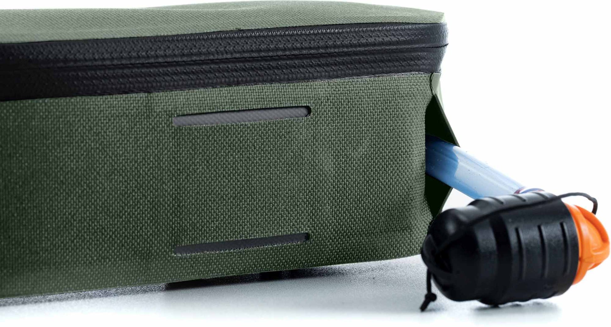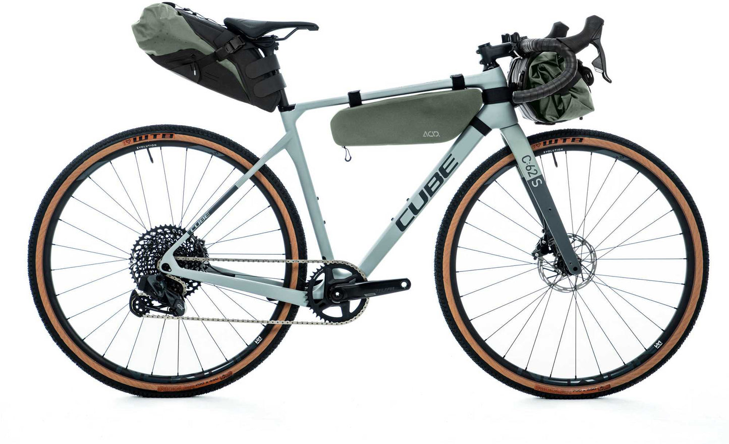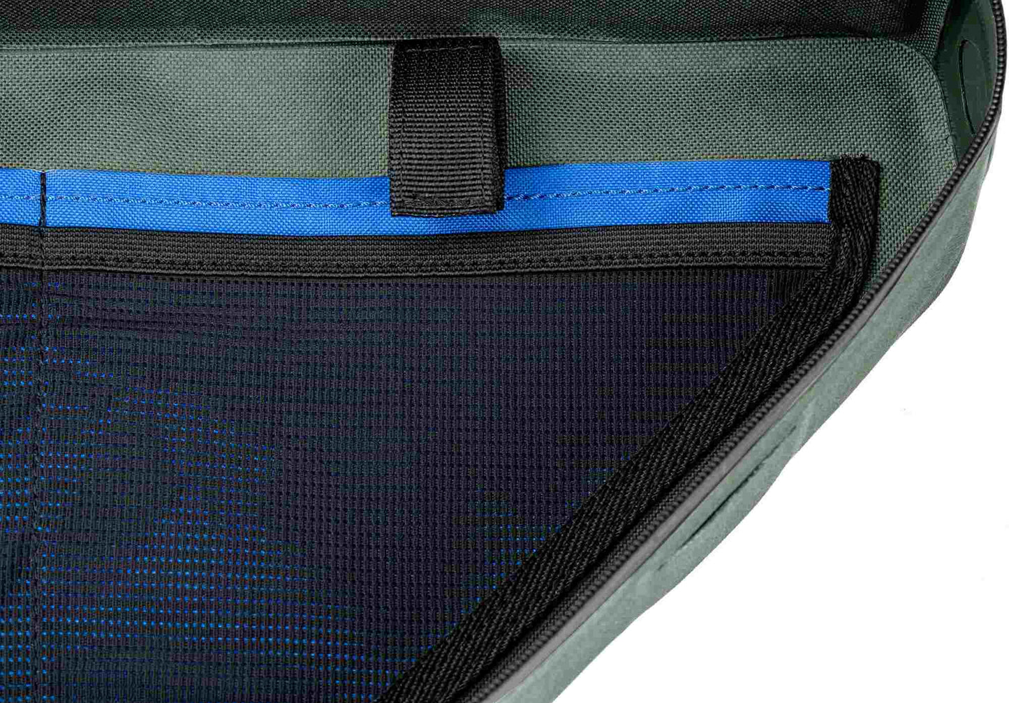 The entire PACK PRO bikepacking series was developed in cooperation with experienced bikepackers. The PRO 2 is the smallest frame bag in this series. Its PVC-free, welded construction is waterproof and the outer is constructed from durable material that's easy to care for. The MOLLE system offers flexibility in spades, allowing the bag to attach easily to a wide variety of frames. Side zip pockets with smooth-running zips are perfect for stashing small items. We put just as much attention into designing the interior: multiple compartments are perfect for organising tools, spares and more, while the colour-contrasting material makes it easy to find everything. Reflective details improve visibility on the roads in low-light conditions.