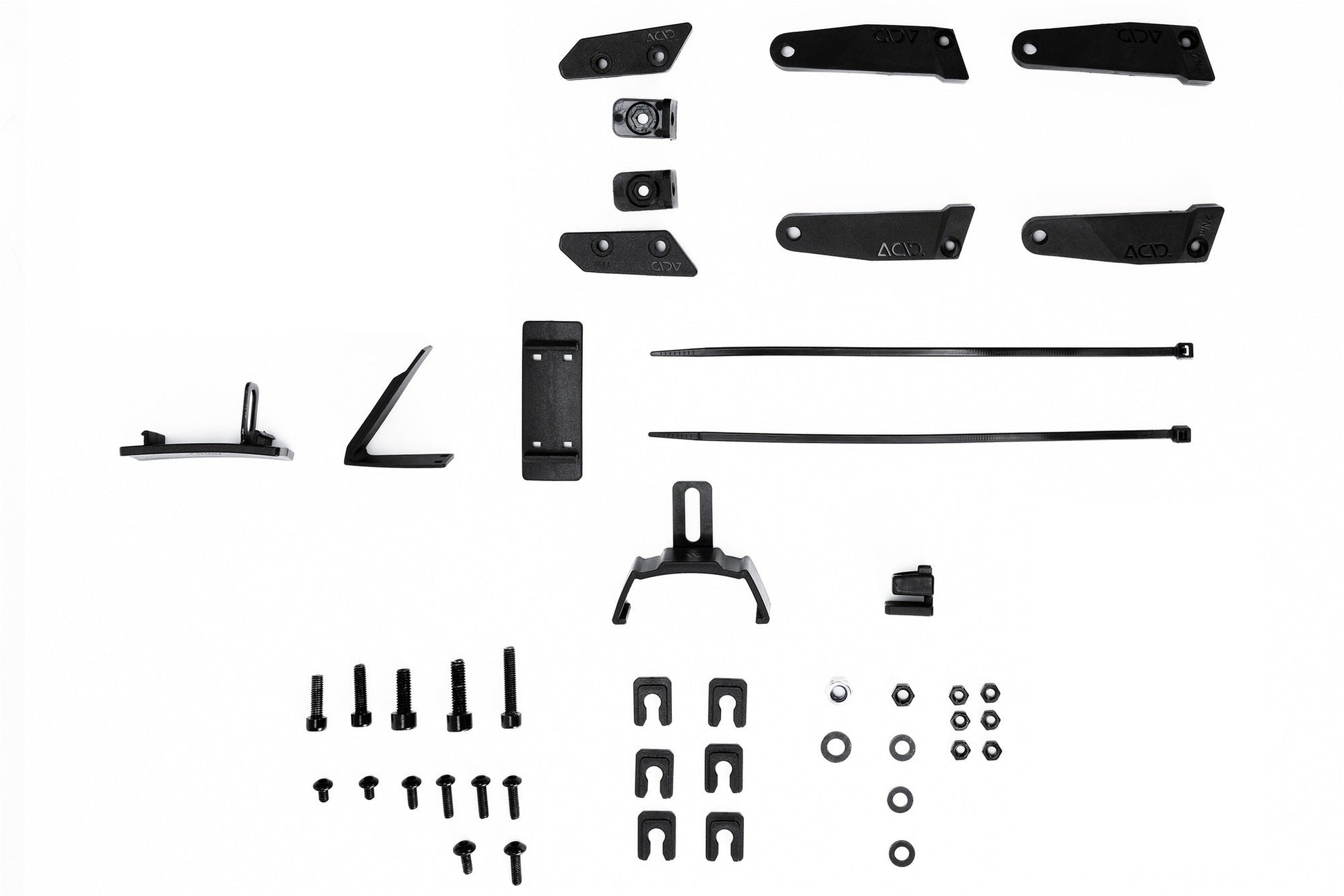Our credo when designing the ACID Mudguard Set? Maximum versatility! It fits most 28in trekking bikes with a maximum tyre width of 1.5in / ETRTO 40-622. Clever finishing touches like glossy icon details, the ACID adapter system, FEM-optimised design and an integrated lighting cable guide add style and practicality to any bike. It's even compatible with our ACID rear light integration technology. The complete package! BB-Mount: The mudguard is mounted to the Bottombracket. ST-Mount: The mudguard in short design is mounted to the seat tube with an adapter.