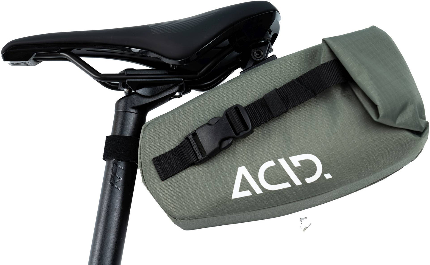 Pack the essentials. The ACID CLICK XL saddle bag keeps your important bits and pieces safely beneath your saddle, out of the way. The compact design, waterproof construction and rear light holder are typically ACID finishing touches.