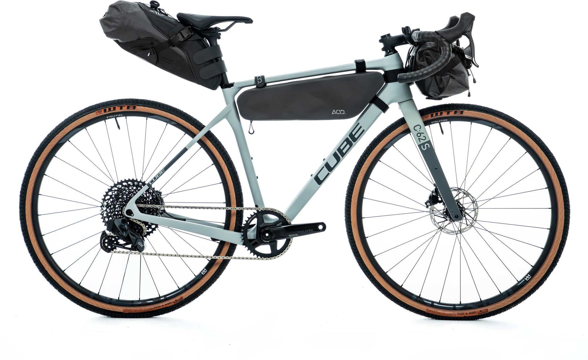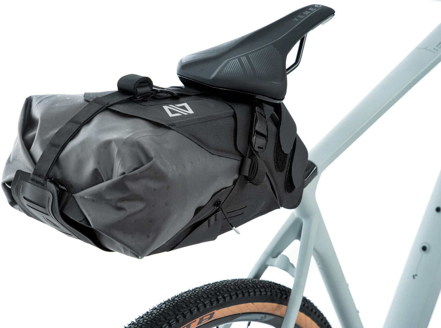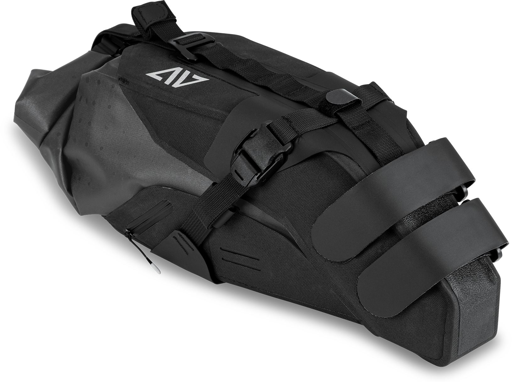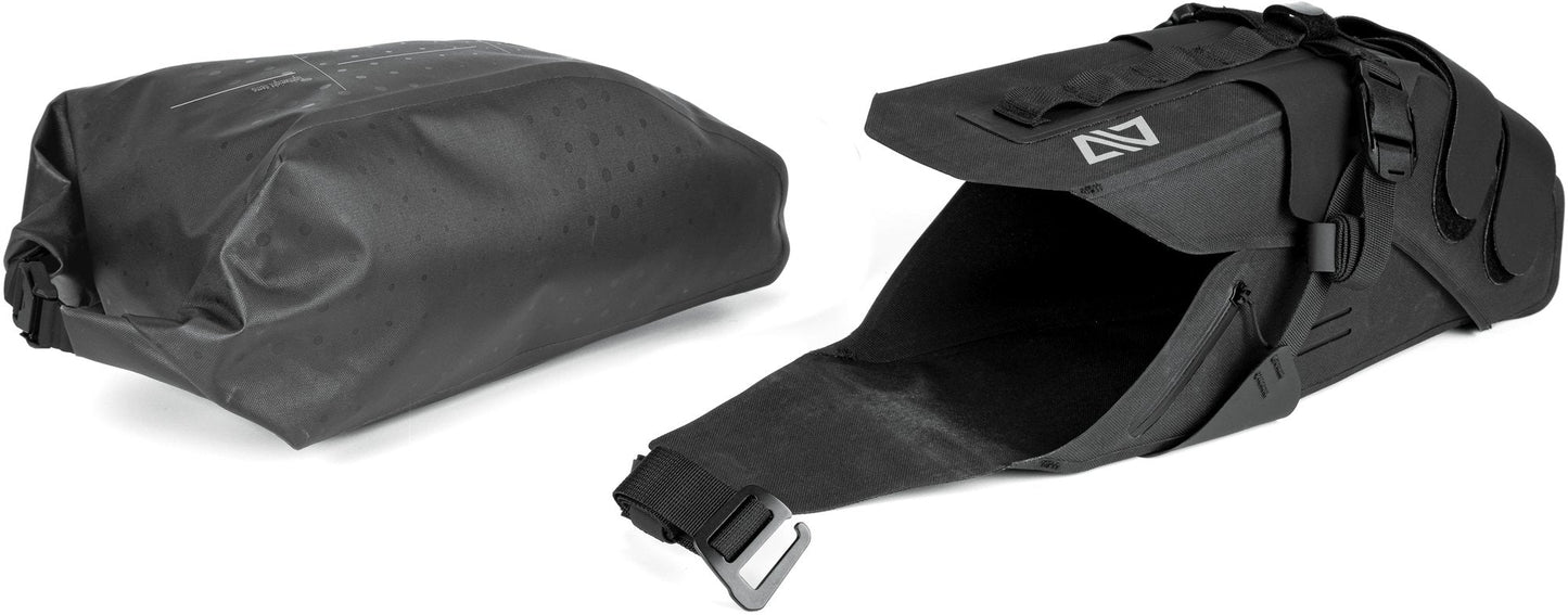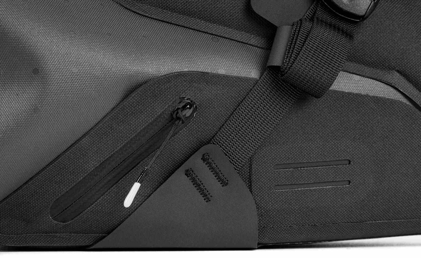 From micro adventures to multi-day or -week bikepacking tours, the ACID PACK PRO 11 was developed in cooperation with experienced bikepackers. The two-piece system includes a harness and a waterproof dry bag with welded construction for maximum functionality. Using the flexible MOLLE system, the harness securely attaches to the saddle rails and seatpost where, once fitted, it can stay on for as long as you need. The rugged dry bag simply slots into the harness and fixes in place, and is just as quick to remove when shopping for supplies or when you've arrived at your destination for the evening. Another feature: an integrated air valve that allows the contents to compress down even further. Reflective details on both parts improve visibility on the roads in low-light conditions. There's also an attachment for mounting a tail light.