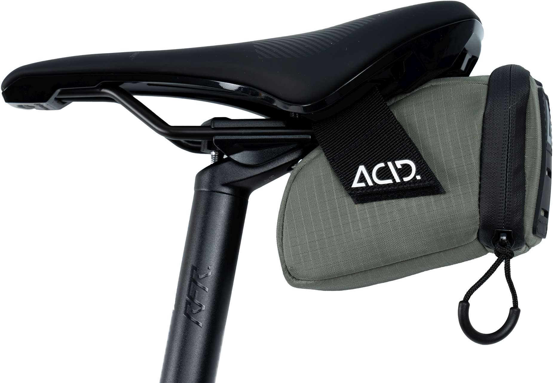 Pack the essentials. The CUBE PRO S saddle bag keeps your important bits and pieces safely beneath your saddle, out of the way. The compact design, water-resistant zip and rear light holder are typically ACID finishing touches.