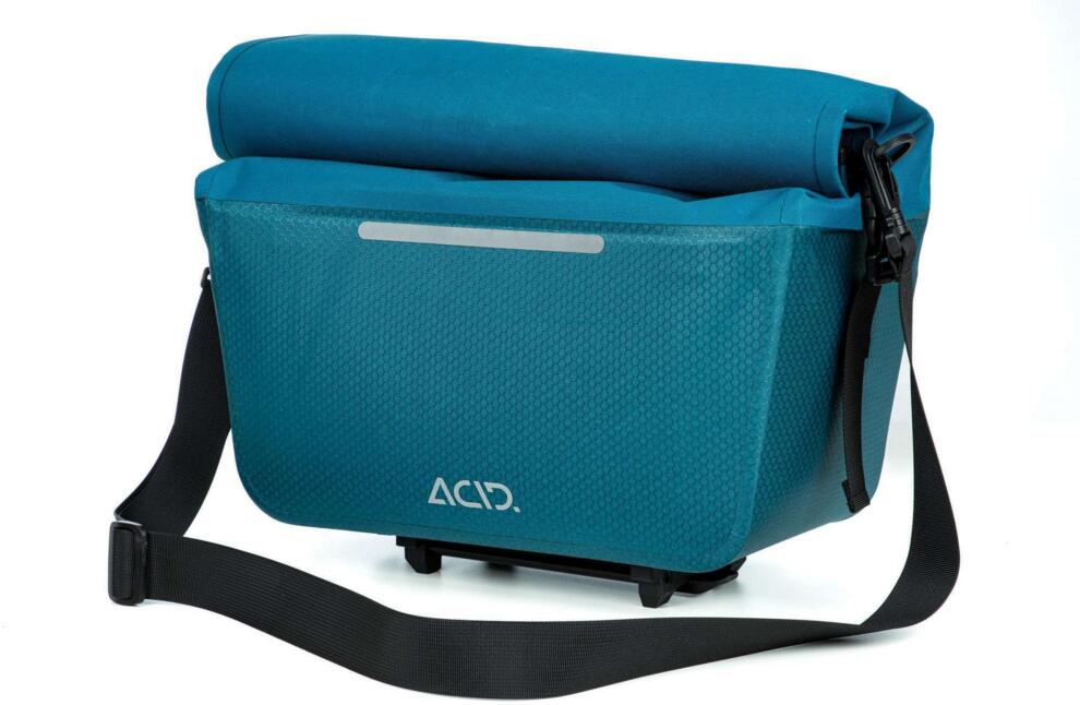 The waterproof exterior of the TRUNK PRO 14 Bag keeps your stuff protected in all weathers, while the ACID RILink adapter guarantees quick and easy attachment to all RILink carriers from ACID and CUBE. A convenient shoulder strap takes it from rack to shoulder with ease. Reflectors add visibility in all conditions.