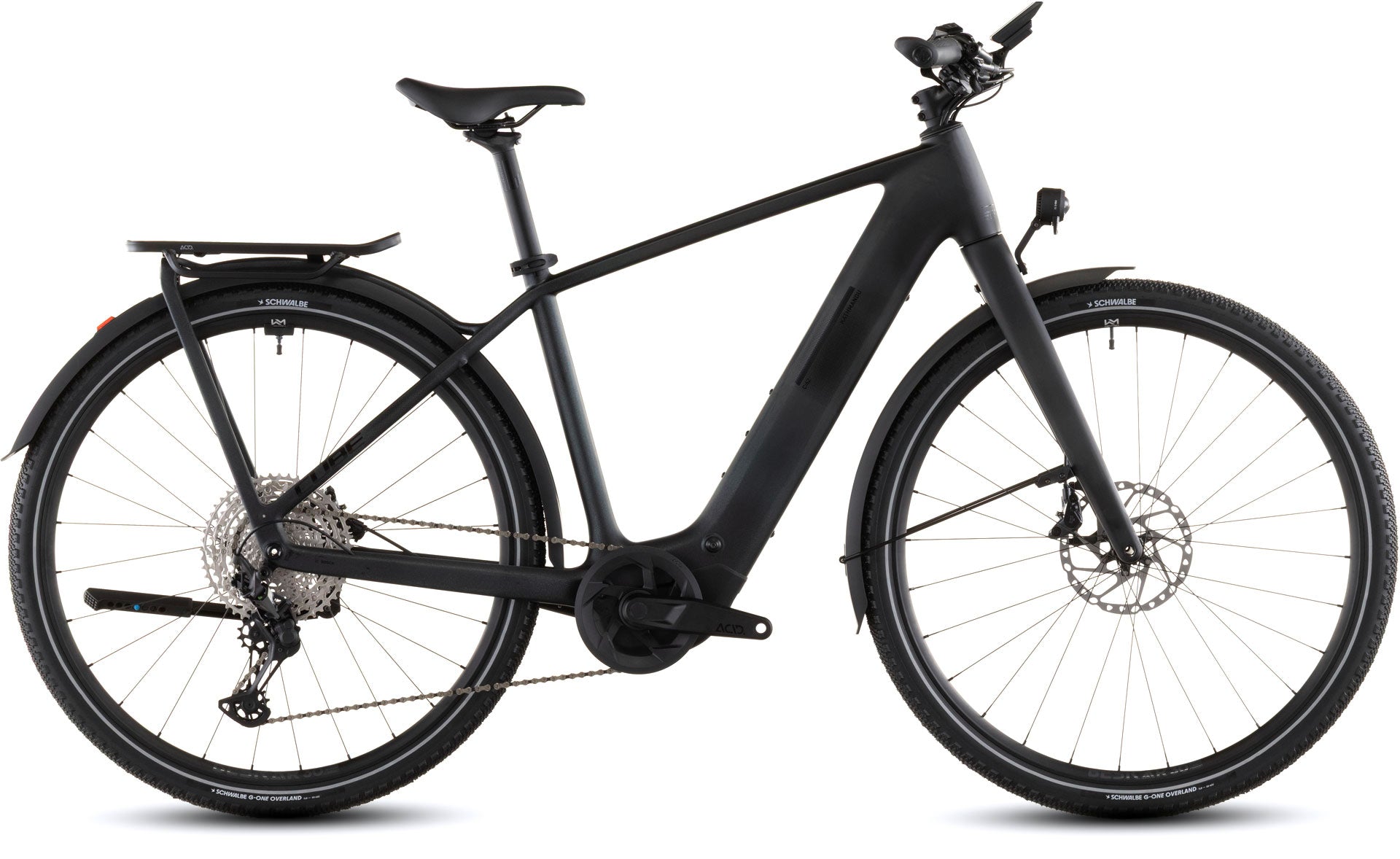With its C:62 carbon frame and rigid carbon fork, the Kathmandu Hybrid C:62 SLX has the same rugged appeal as its illustrious forbears, but with a focus on lower weight. The smooth Bosch SX motor and 400Wh battery continue the svelte theme, delivering up to 60Nm of torque via Shimano's wide-ranging XT 1x12 gears and rugged Newmen Beskar 30 wheels shod with grippy Schwalbe G-One Overland Evo 50mm tyres. There is, of course, a full complement of practical accessories so you're ready for anything, whether it's a trip across town or overland. And, with powerful Shimano Deore hydraulic disc brakes, you can slow and stop safely in all weather conditions. It may be light, but it's no lightweight.