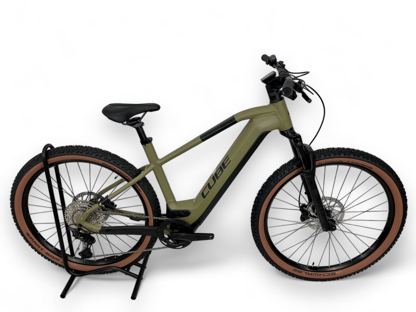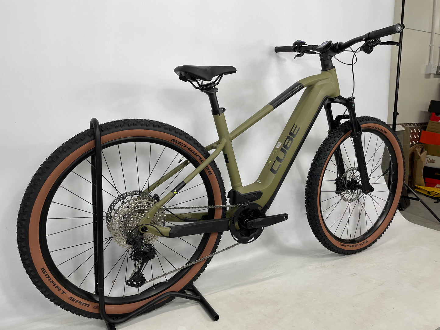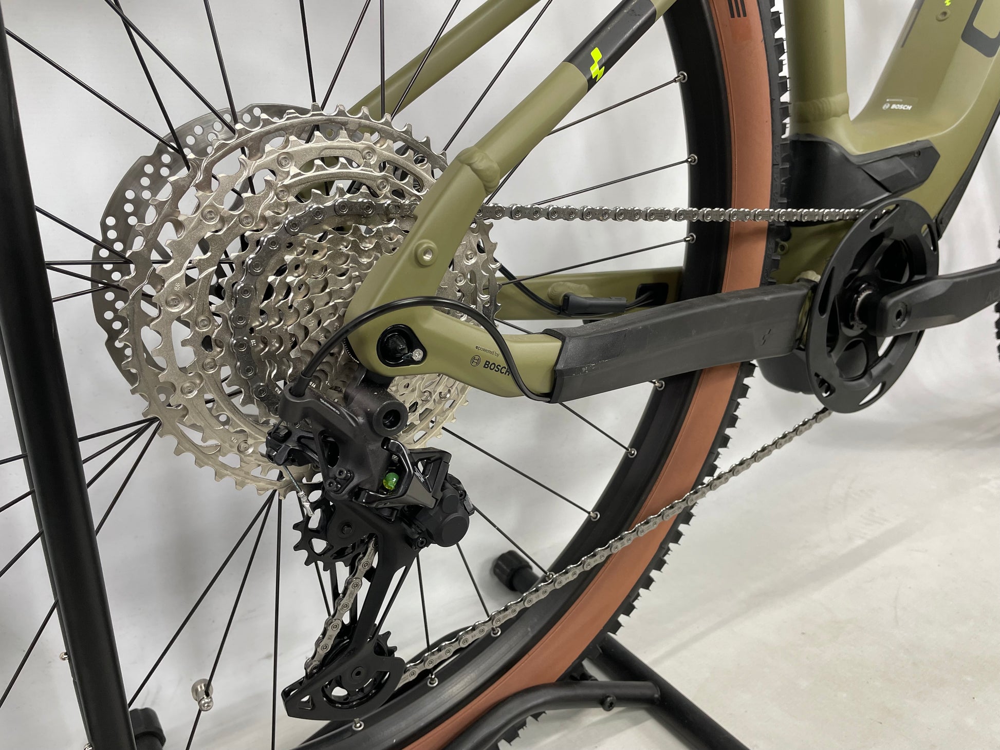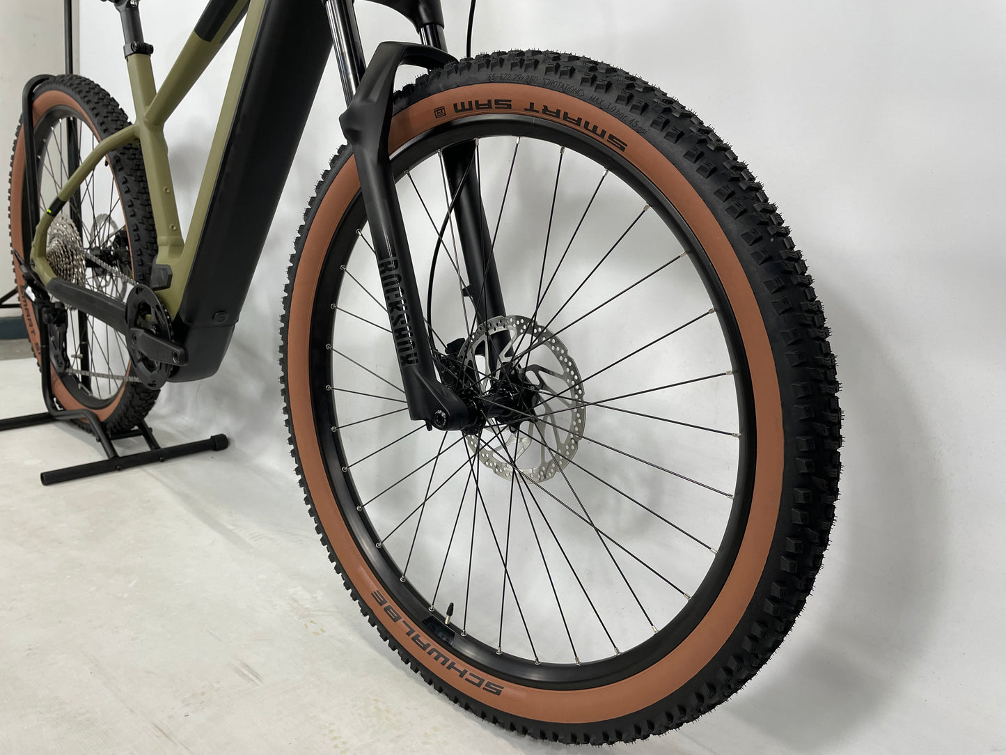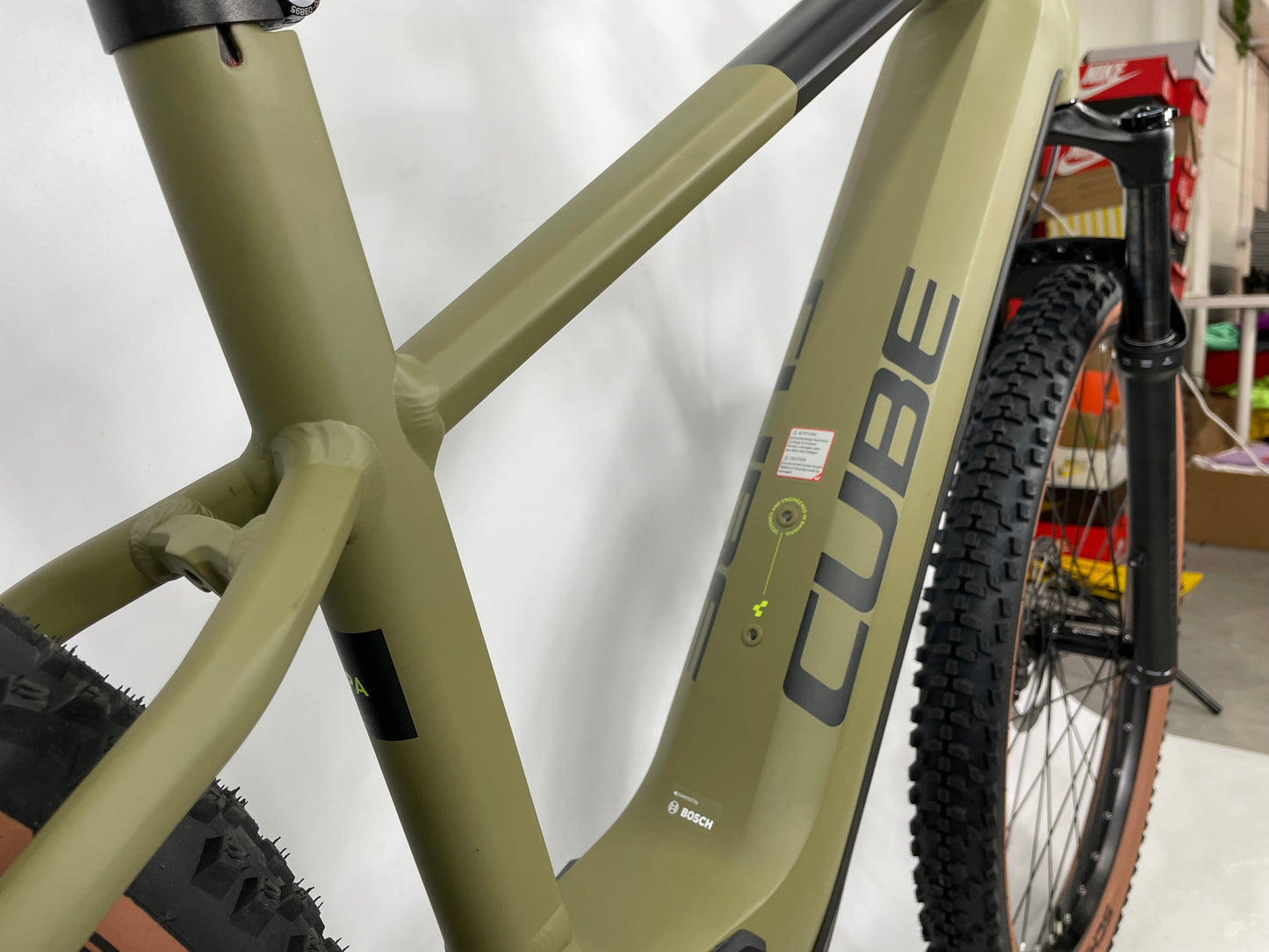 Size XL. Brand New. 1 Year warranty involved. Rockshox Judy Silvers Forks on the front suspension With 120mm of travel offering a very comfortable ride with the ability to handle anything that’s thrown at it. 750Wh Battery powering you up to 120km per charge. This is the battery you want if you want the longest lasting charge. This is the biggest Wh size battery you can get in the industry. Bosch CX drive Motor to make pedaling a breeze with a beautiful “Olive” Colour way to finish it off.