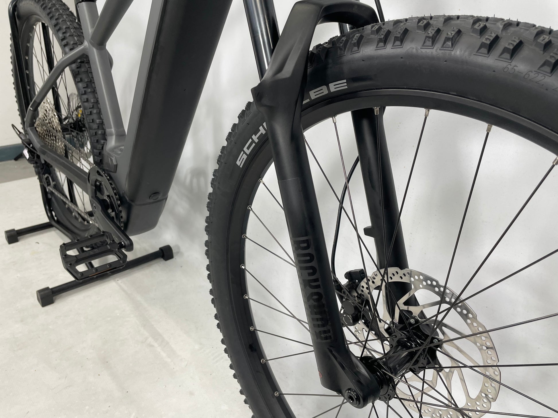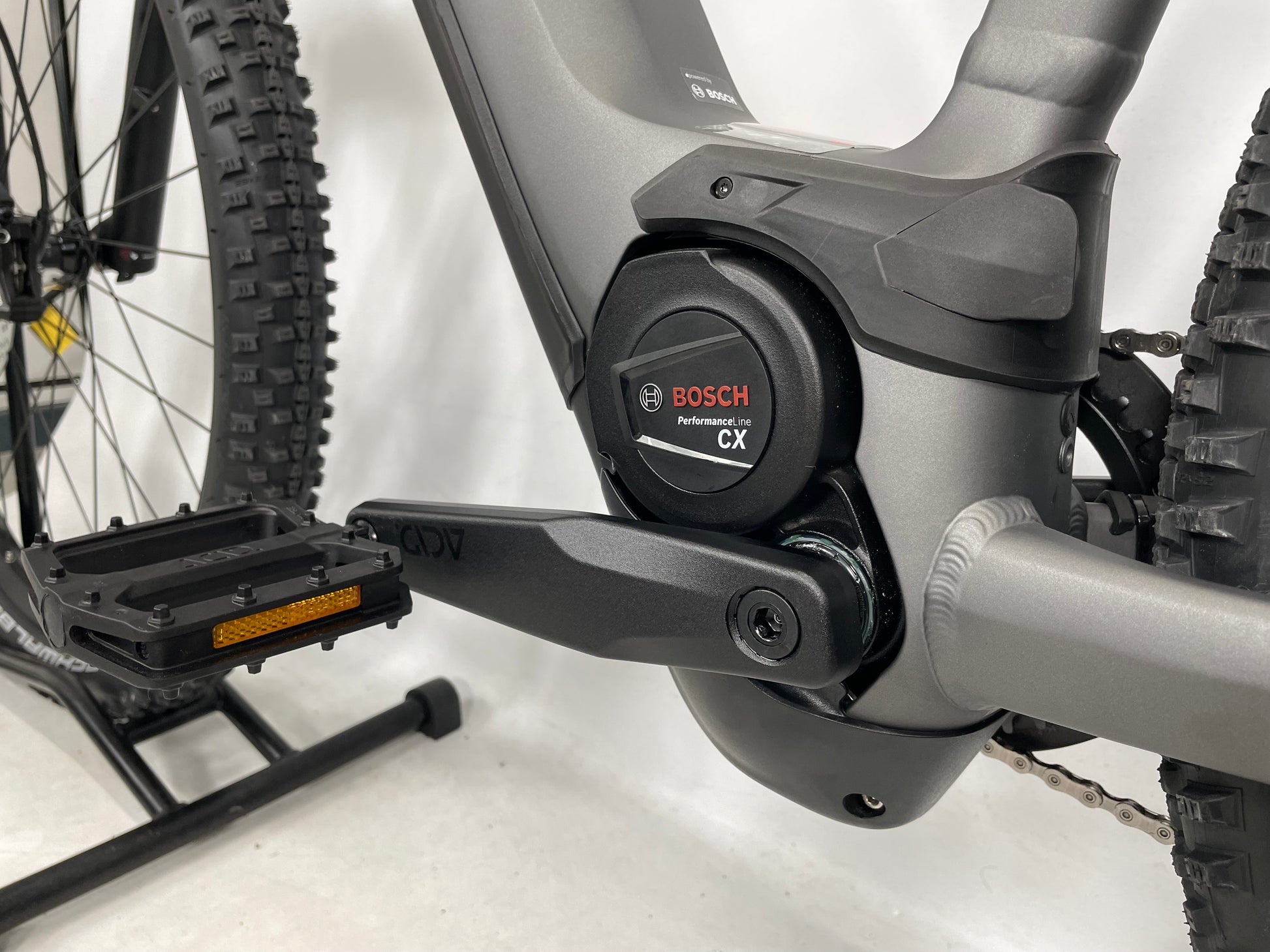 Size Large, Brand New. 1 Year warranty involved. Rockshox Judy Silvers Forks on the front suspension With 120mm of travel offering a very comfortable ride with the ability to handle anything that’s thrown at it. 750Wh Battery powering you up to 120km per charge. This is the battery you want if you want the longest lasting charge. This is the biggest Wh size battery you can get in the industry. Bosch CX drive Motor to make pedaling a breeze with a beautiful “Satin Grey” Colour way to finish it off.