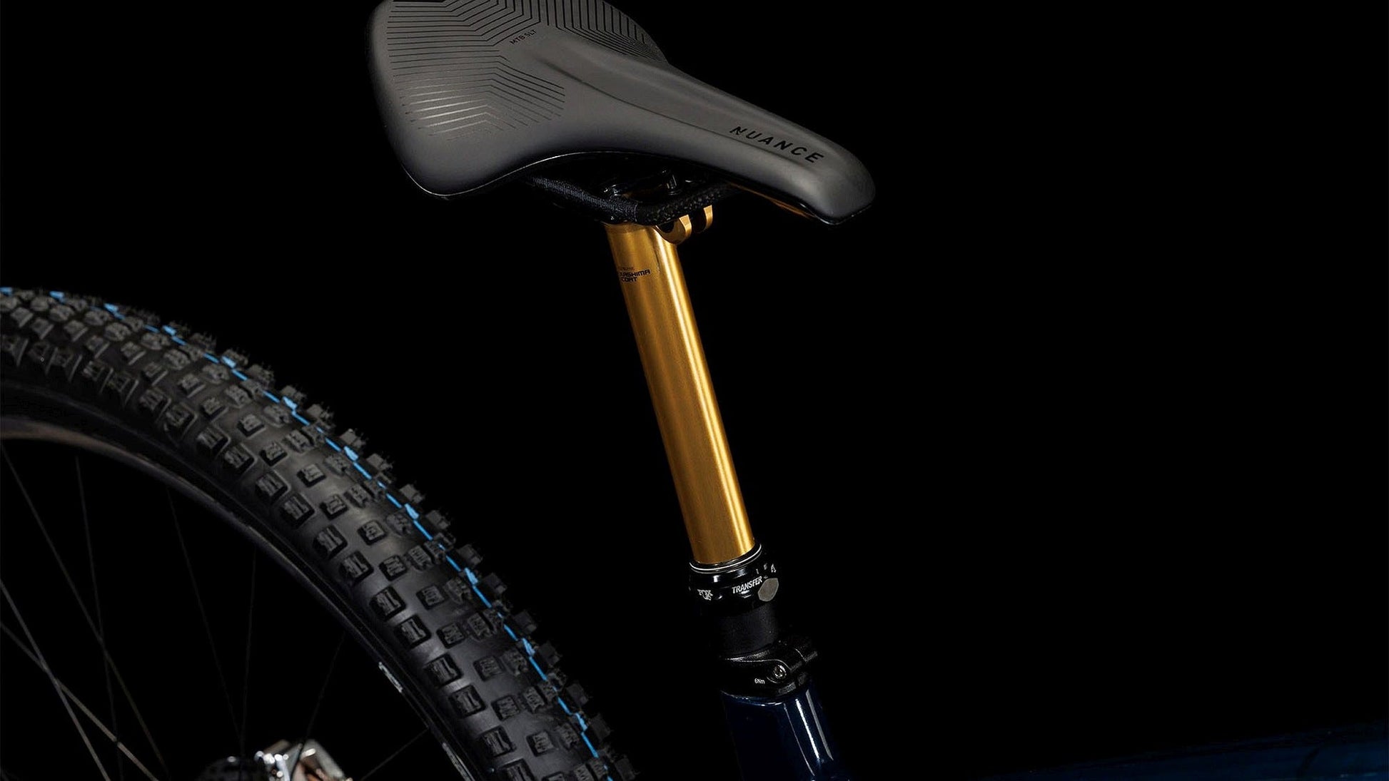 When it's time to get tough on the trail, the Stereo ONE44 C:68X SLT's advanced carbon construction, low weight and careful component selection will give you the edge you need. A remote dropper post and neat frame design features are just the start. We fitted a pair of Newmen's Advanced SL A.30 carbon wheels with 2.4in Schwalbe tyres and Sram's powerful Code Ultimate hydraulic disc brakes for rapid acceleration, ultimate grip and precise control. Then we added the advanced bump-absorbing ability of a Fox 34 Factory fork and Float DPS Factory shock. And finished with the peerless precision of Sram's XX1 Eagle AXS wireless 1x12 gears. Add it all up, and the trail doesn't stand a chance...