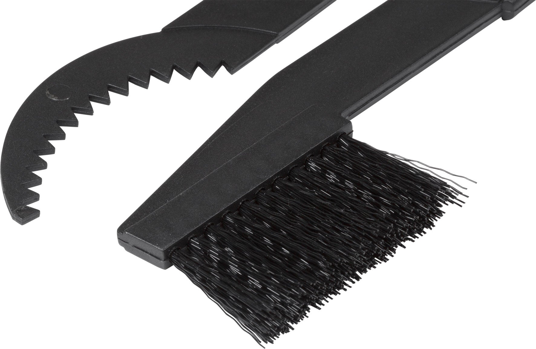 Set containing a Sprocket scraper for removing coarse dirt and a brush for pinion and gear cleaning. Long durability due to nylon bristles.