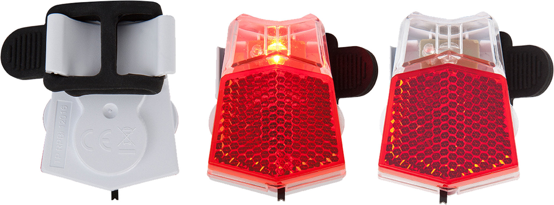 Compact light set. One front white LED with three light modes. Can also be used as a flashlight. The 1 'red' LED has an integrated reflector for enhanced visibility. Very easy mounting on all tube diameters (e.g. on tent poles). Both lights are splashproof and come with batteries. Lights listed under "Outdoor" may not be affixed to bikes/vehicles or used on public roads in Germany.