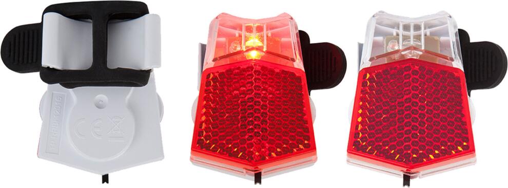Our RFR compact beginner light set. The front white LED has three functions.The light can be removed from the holder in a few steps and is also usable as a flashlight. The 'red' LED light has four light functions from permanent to flashing. Very easy holder fitting, which can be fitted to different pipe diameters (e.g. tent poles). Both lights are splashproof and come with included batteries. Lights listed under "Outdoor" may not be affixed to bikes/vehicles or used on public roads in Germany.