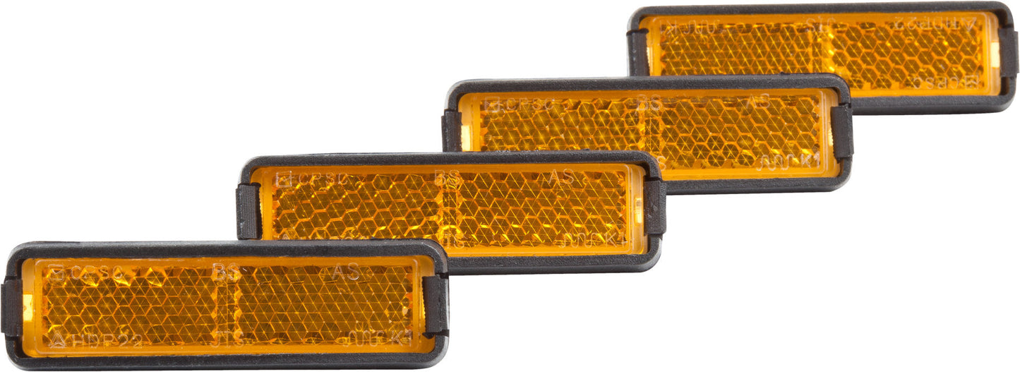 Pedal reflector set with STVZO (road traffic regulation) admission. Easy and fast assembly via toolless fitting.