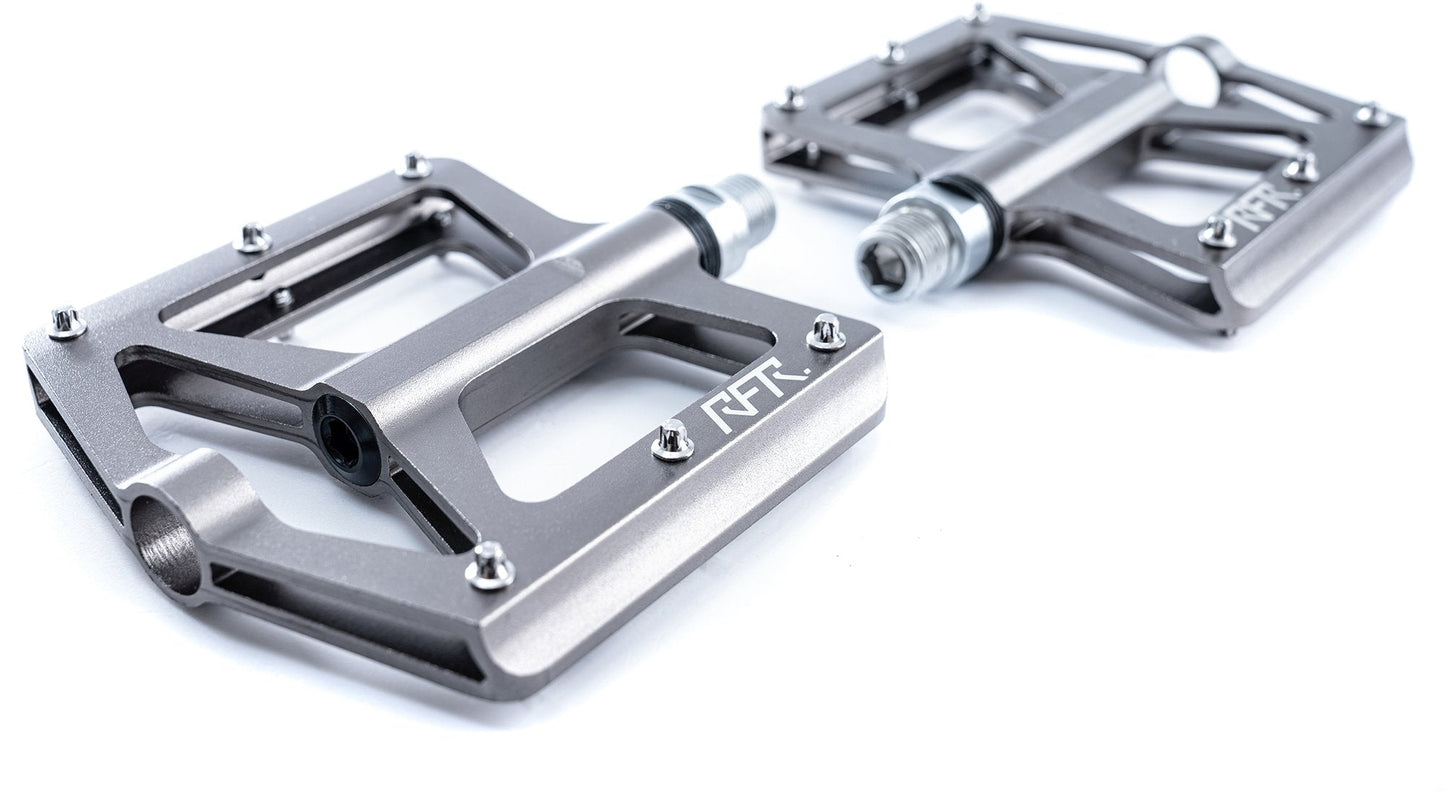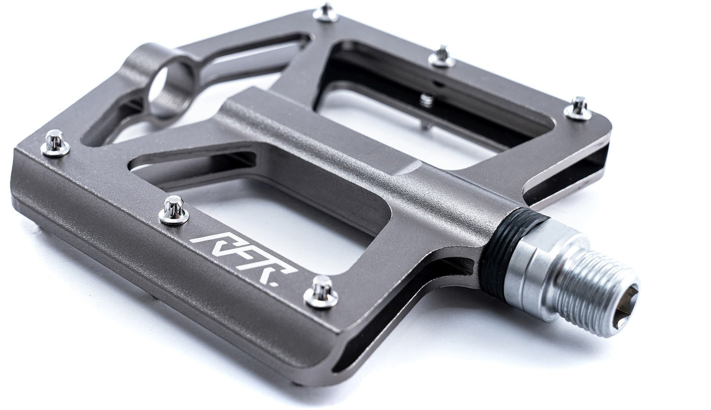 Light, low-profile flat pedal with cartridge bearings and LSL bushing. Outstanding grip comes courtesy of the replaceable anti-slip pins.