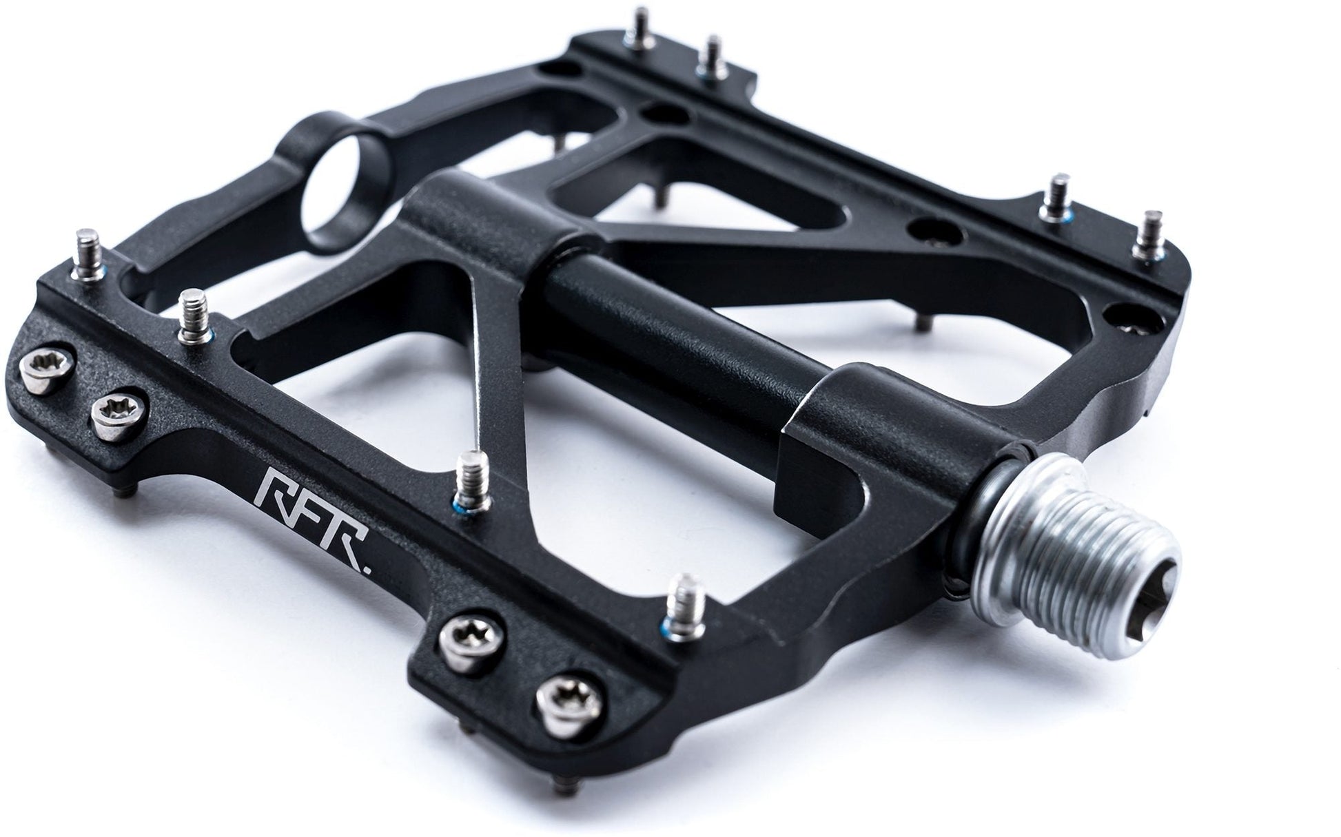 High-end CNC-machined flat pedal with an aggressive flat design. Superior grip and outstanding safety come courtesy of the replaceable pins and large, anti-slip surface. Constructed with a CrMo axle for added durability.