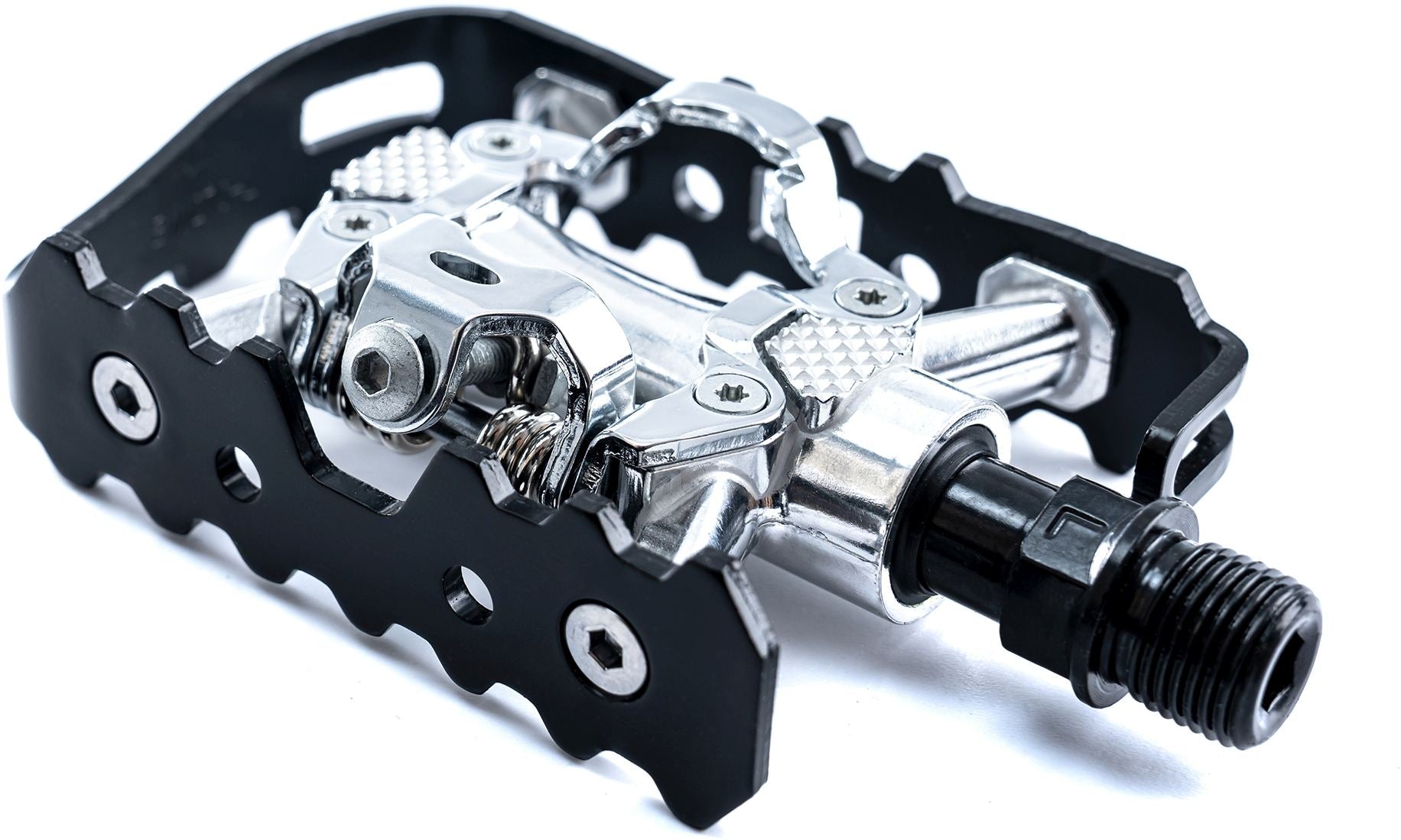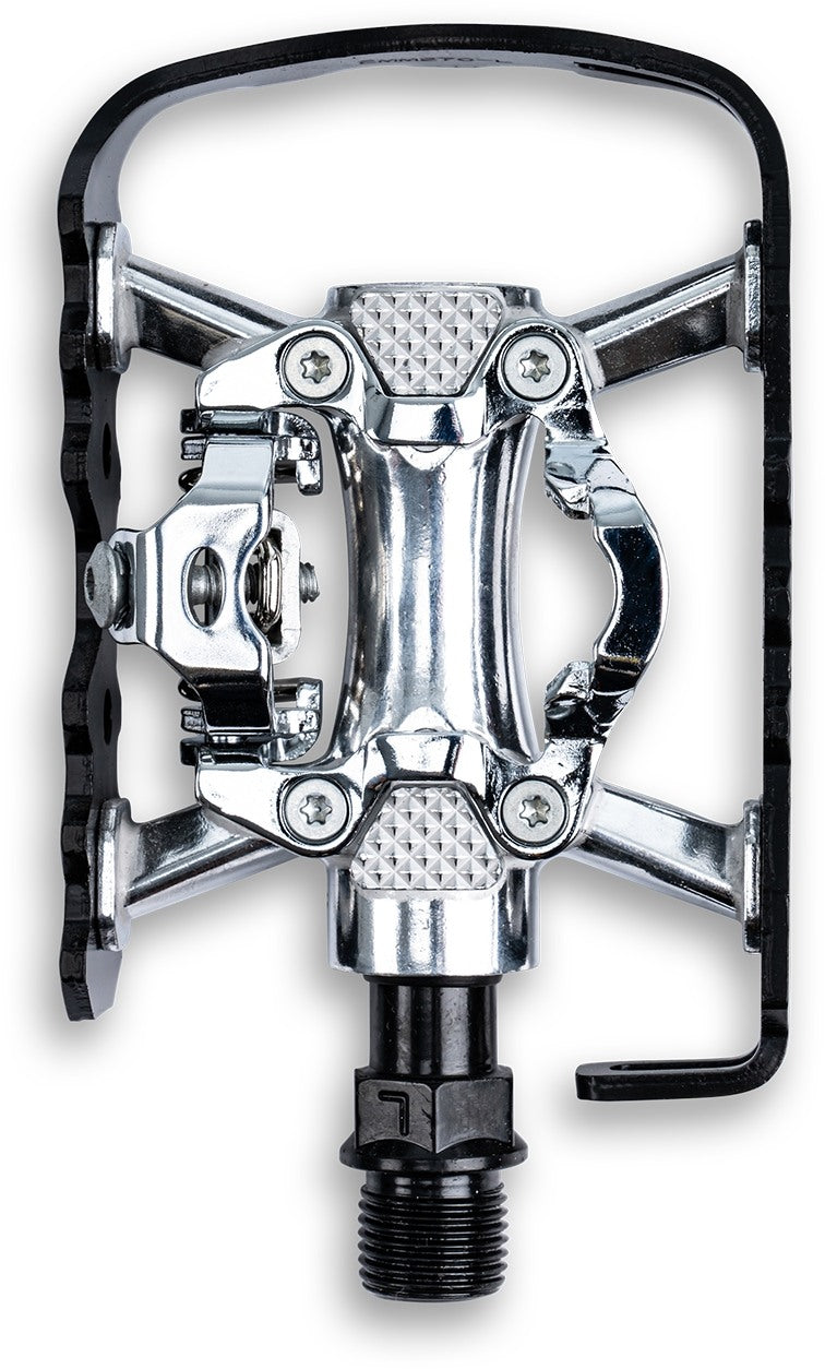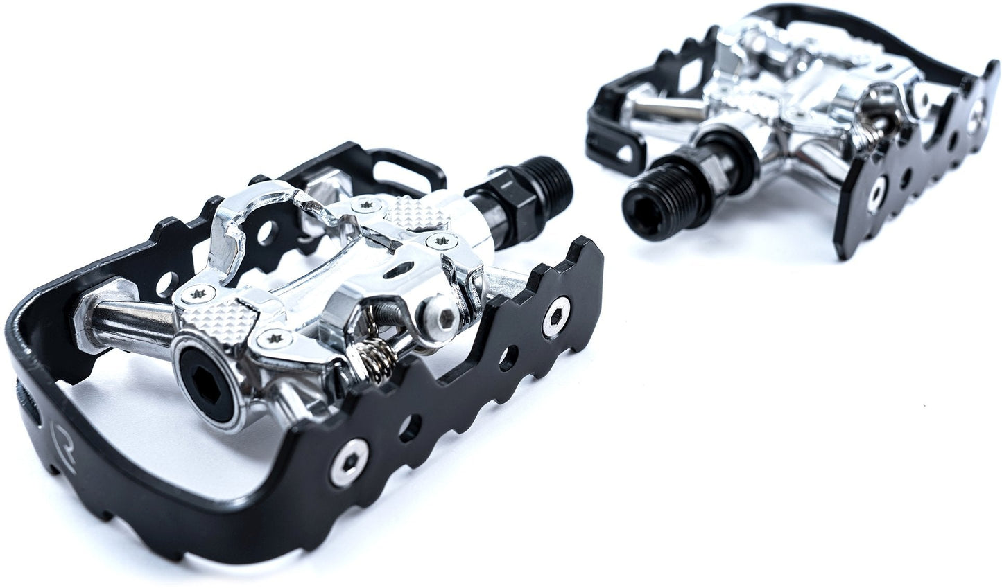 These 2in1 pedals are SPD compatible and are installed onto a CrMo axle. The pedals are equipped with high-quality bearings.