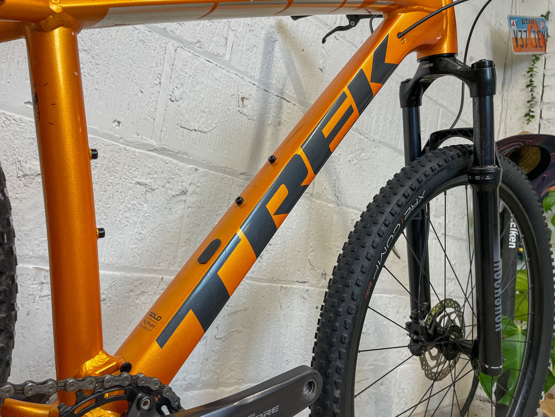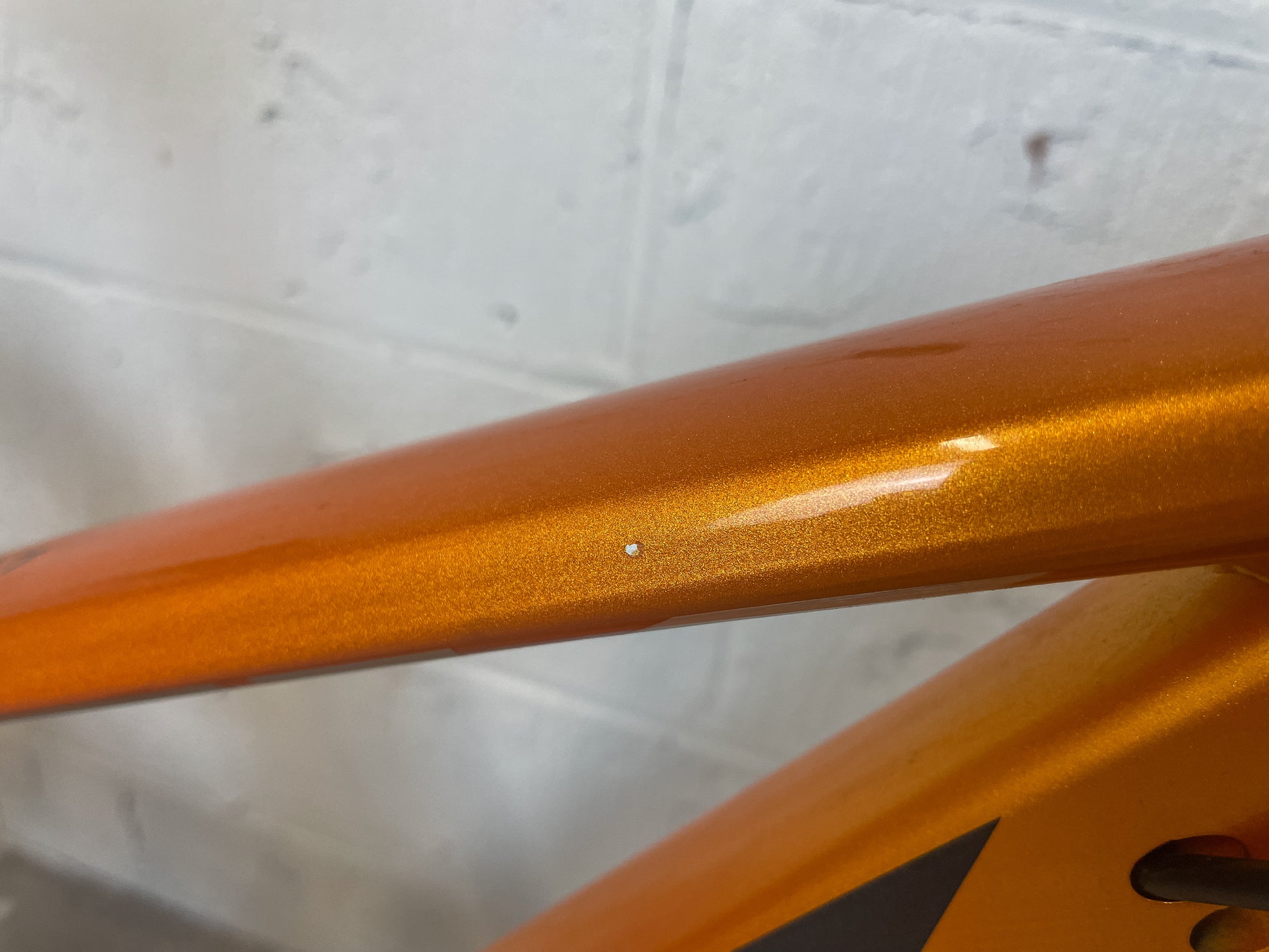 Available In Size Large. 1 Year warranty involved. RockShox Judy SL Forks on the front suspension offering a very comfortable ride with the ability to handle anything that’s thrown at it. Alpha Gold Aluminium Frame, Shimano Deore M5120 derailleur to make pedaling a breeze with a beautiful “Factory Orange” Colour way to finish it off.