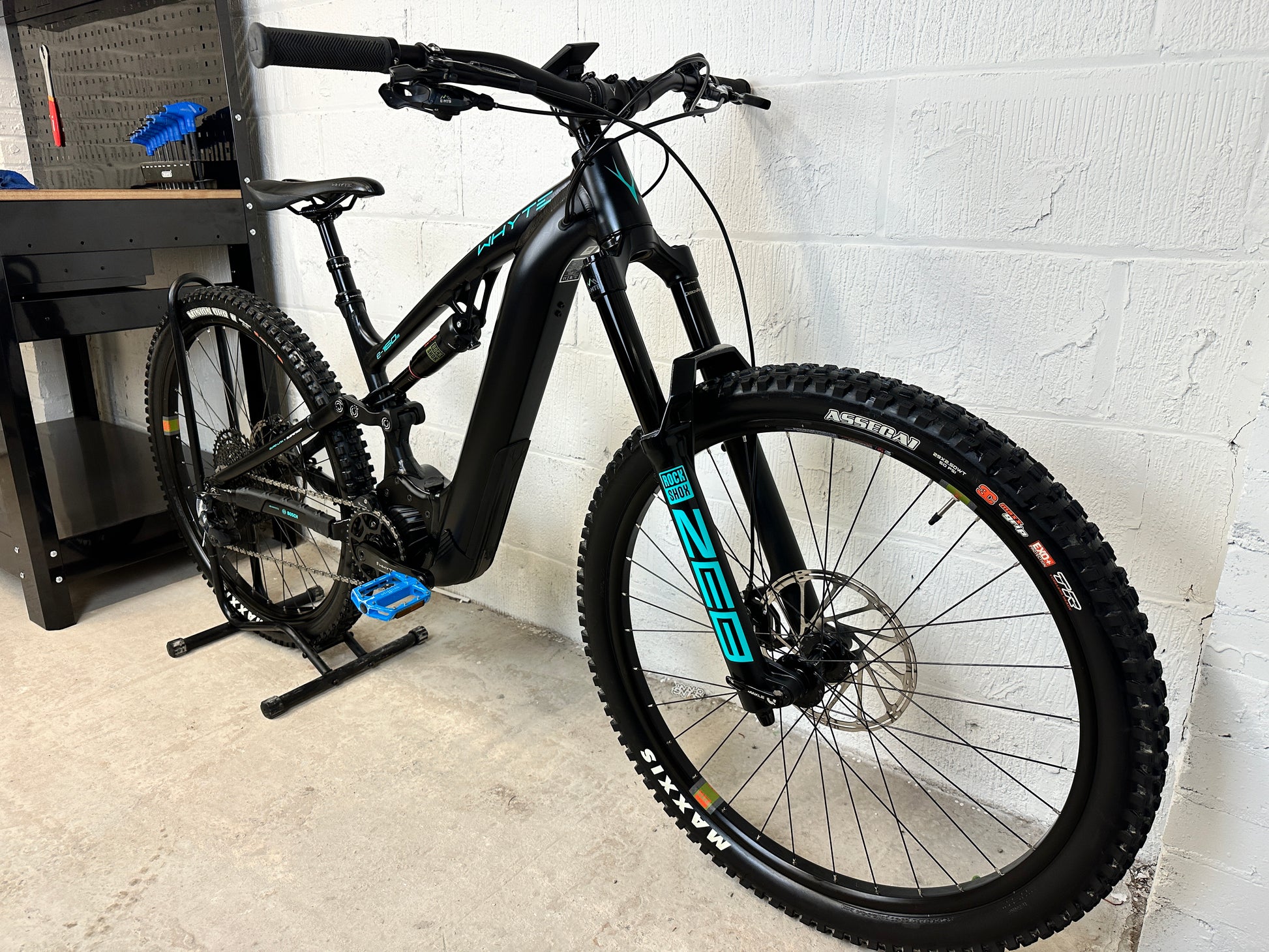 Size Medium. 1 Year warranty involved. Only rode 400 Miles! RockShox ZEB 29" Forks on the front suspension With 160mm of travel and RockShox Deluxe Select R on the rear offering a very comfortable ride with the ability to handle anything that’s thrown at it. 750Wh Battery powering you up to 130km per charge. This is the battery you want if you want the longest lasting charge. 85Nm Performance Line CX drive unit to make pedaling a breeze with a beautiful “Matte Black with Turquoise and white ” Colour way to finish it off.